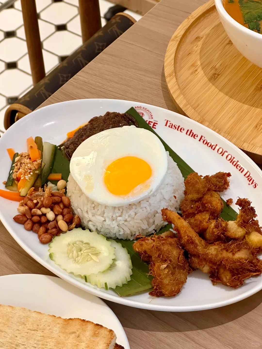 走进店里,蛋挞香气扑鼻而来,让人想尝遍每一种口味。榴莲、香芋、绿茶和原味都香滑顺口,每口都带来满足感。茶室融合复古与现代元素,木桌椅搭配霓虹灯,氛围舒适宜人。焙茶海南咖啡与冰茶滴口感丰富,苦甜交织恰到好处。Banjir椰浆饭和咖啡牛油菠萝包份量充足,是理想午餐选择。