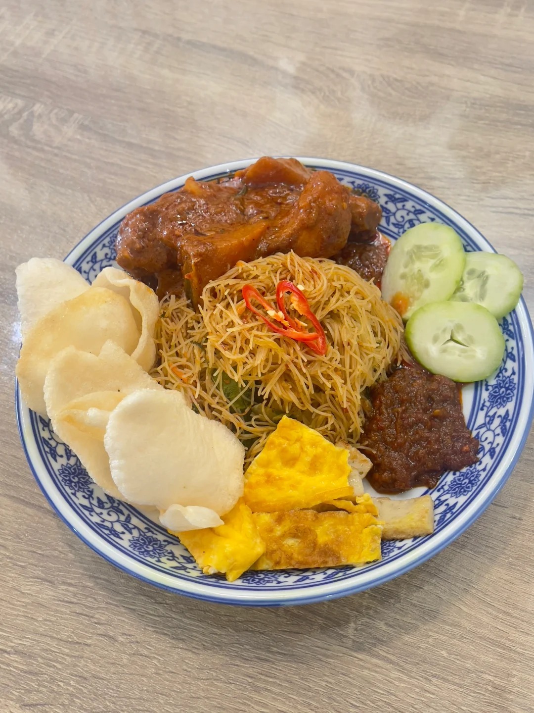 Kota Damansara的Mama Jia,将娘惹菜与马六甲家常味融合得恰到好处。娘惹拉沙汤底浓郁顺口,米暹配咖喱鸡香味扑鼻。炸鸡椰浆饭外酥内嫩,每一口都温暖人心。鱼饺面清香顺滑,甜点Cendol雪花冰是完美收尾。藤椅与蓝瓷砖装饰充满老马六甲风情,让人放松。